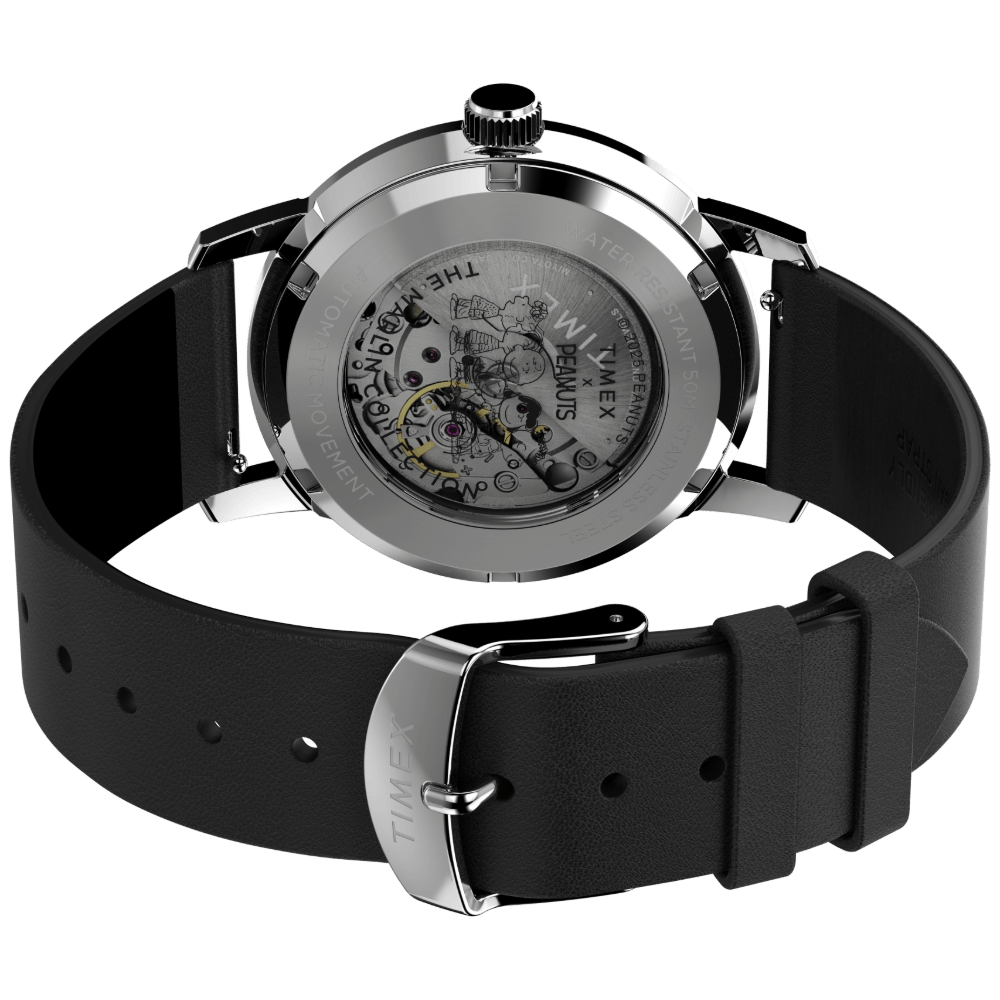 A pulseira em couro legítimo preto garante conforto e um toque de sofisticação. O fecho em aço proporciona um ajuste seguro e prático para o dia a dia. Este modelo conta com um fundo de rosca, que assegura maior proteção ao mecanismo interno.